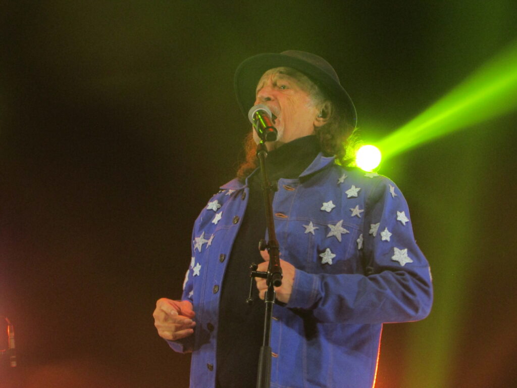 Logo depois ele manda Coração Bobo e resolve antecipar o carnaval pernambucano cantando Hino do Elefante de Olinda e emendando com sua carnavalesca Pirata José. Alceu então, sempre em tom de prosa e contador de causos, fala de uma mulher de olhar agateado que encantou o artista, e a deixa para fazer todo mundo dançar com a sacolejante Como Dois Animais. Depois muda mais uma vez o set pra fazer uma sequência de canções pro povo dançar, tocando em sequência Pisa na Fulô, Juazeiro (mais uma do Gonzagão), A Briga do Cachorro com a Onça, e ainda faz um repente tendo Porto Alegre como tema. Impossível não se contagiar com Alceu, quase 80 anos, mas com uma vitalidade de guri, canta, dança encanta, e diferente do show do ano passado quando tocou com a Orquestra de Ouro Preto num formato engessado com o cantor preso a uma cadeira, esse show foi a desforra. Mais serelepe do que nunca, não parou um segundo e apresentou a sua banda com Zi Ferreira na guitarra, Nando Barreto no baixo, Tovinho nos teclados, Andre Julião na Sanfona e Cássio Cunha na bateria, além de um flautista e vocalista que não pesquei o nome.