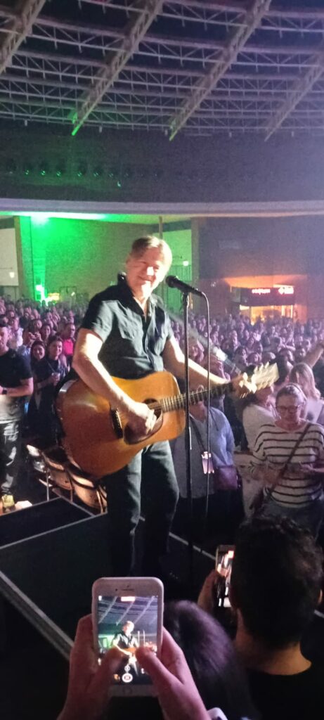 Depois de três shows pelo Brasil, chegou a vez do cantor desembarcar em Porto Alegre para apresentar a turnê Roll With The Punches para os gaúchos. O nome vem do décimo-sexto álbum de estúdio do artista. Nos shows anteriores tínhamos a informação que ele iria começar o show literalmente no meio da galera. Um praticável estava pelo meio do auditório, dando a pista que seria ali que começaria o show. Por volta das 21h20min, ao soar um gongo (no ritmo do nome da tour), surge o cantor com um pedestal, munido de um violão e começa a cantar Can’t Stop This Thing We Started, de 1991. Eu fiquei a três metros do artista, e ele com total tranquilidade, com um ou dois seguranças em distância boa para conter possíveis interferências, leve e solto, cantou ali mesmo no meio da galera. Segue ali com a linda Straight From The Heart do álbum Cuts Like A Knife, de 1983, e fechou esse inusitado e histórico início de show com Let’s Make A Night To Remember, balada de 1996.