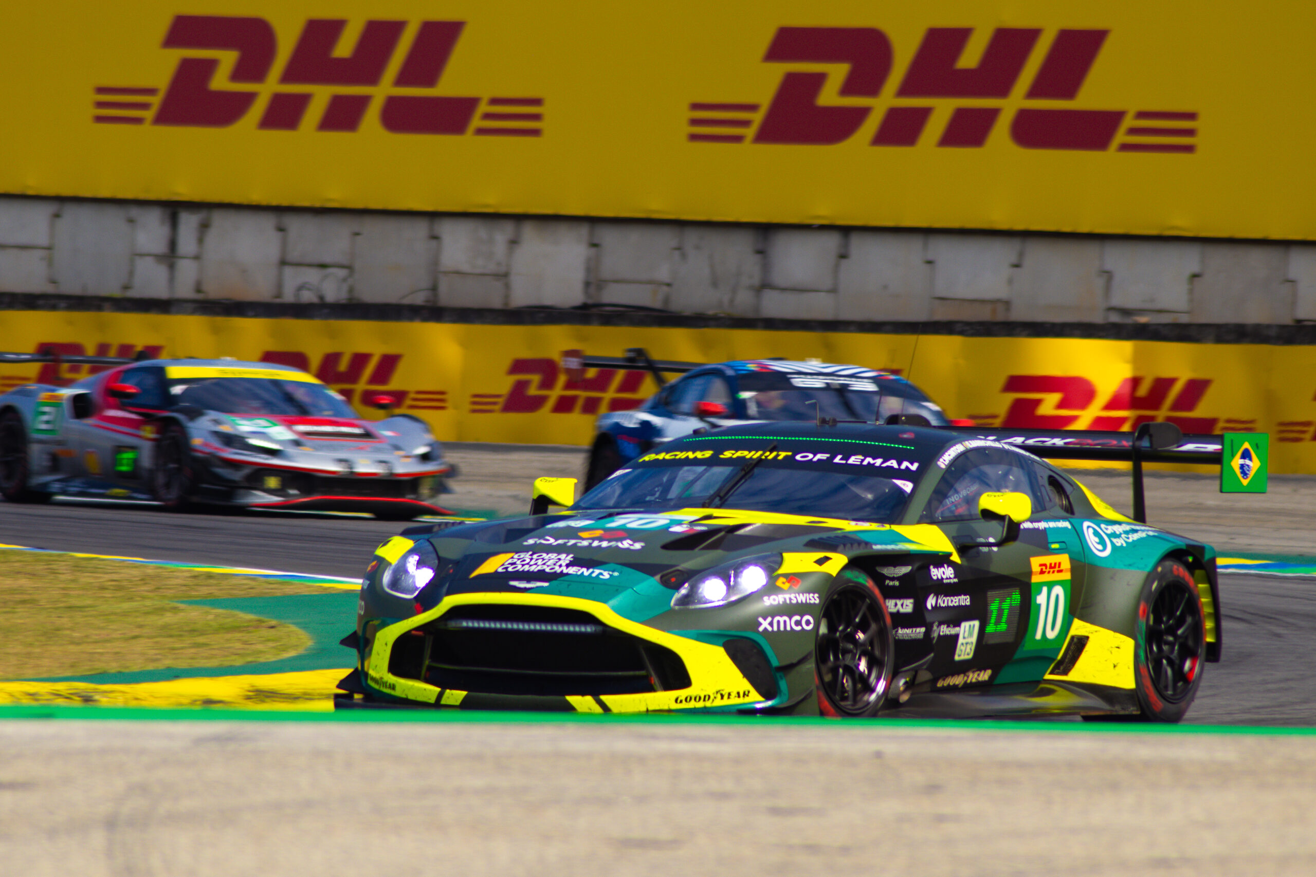 Se no topo geral reinavam os protótipos americanos, o capítulo brasileiro da classe LMGT3 reservou emoção digna de final olímpica. Depois de assegurar a pole histórica no sábado, o Aston #10 começou a corrida com Anthony McIntosh, o piloto bronze obrigatório, que foi tocado por um Lexus na descida do Lago e rodou, despencando para o sétimo lugar. Coube ao francês Valentin Hasse‑Clot recuperar terreno até reaproximar o carro do pelotão principal. Na frente, entretanto, o Lexus RC F #87 da Akkodis ASP, guiado pelo tricampeão mundial de turismo José María López e pelos parceiros Clemens Schmid e Petru Umbrărescu, ditava um ritmo tão forte que mesmo um drive‑through não lhe custou a liderança.