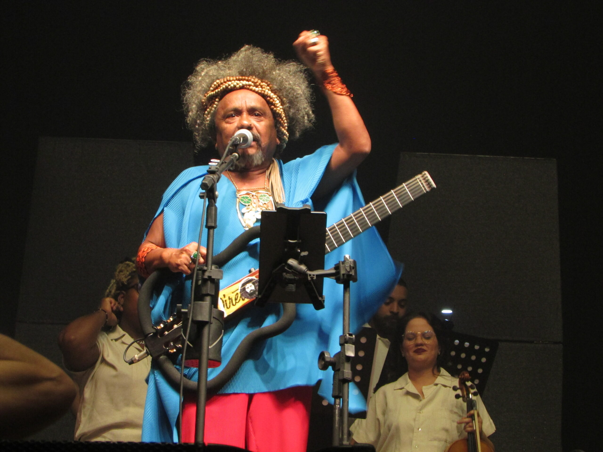 Depois de palmas animadas, com direito à apresentação da Orquestra, composta por jovens (com um figurino que lembra uniforme escolar) e aplausos merecidos, a maestra Ludhymylla Chico anuncia que ainda vai tocar mais algumas.