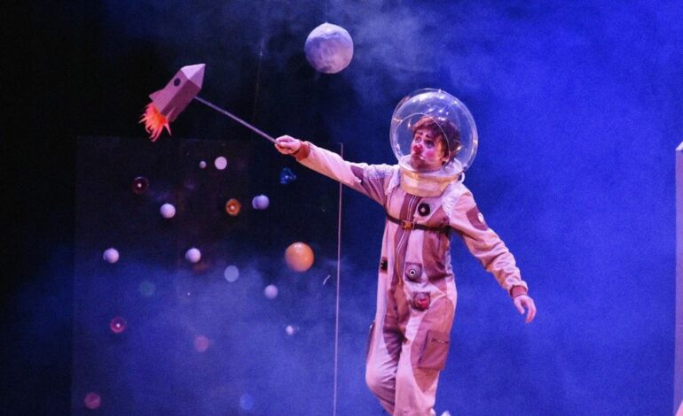 Encerrando o dia, a Caravana Tapioca traz o espetáculo “Fora de Órbita”, estrelado pelo palhaço Astro Nauta, que sonha em deixar a Terra e viajar até a Lua. A montagem mistura malabarismos com planetas, encontros com extraterrestres e muita interação com o público, em uma divertida reflexão sobre a relação humana com o mundo e o desejo de explorar o desconhecido.