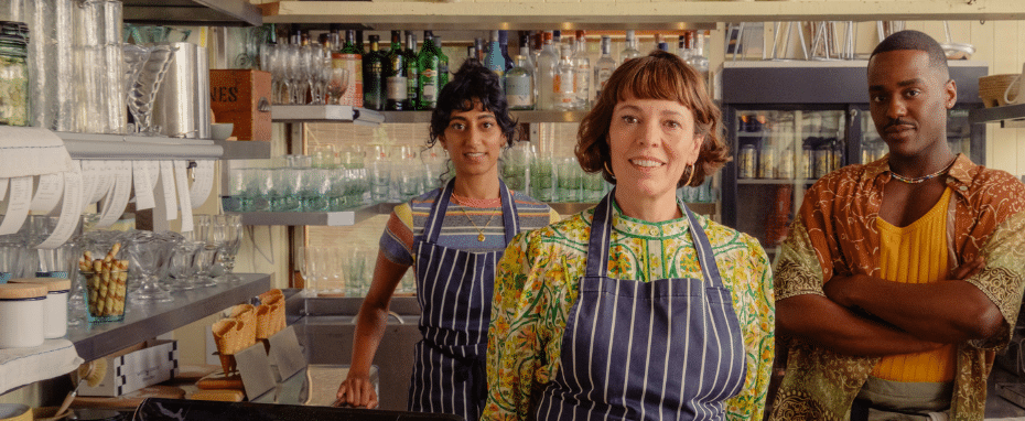 Mas o que realmente leva o filme e nos faz cativar é o casal de protagonistas. Olivia Colman prova que é uma da mais brilhantes atrizes atuais e como a chef de cozinha Ivy, ao mesmo tempo uma simpática e bem humorada mulher, que levava de boa viver na sombra do marido, mas que a guinada na sua vida profissional provoca uma mudança na sua cabeça, se tornando cada vez mais poderosa e arrogante. Já Benedict Cumberbatch, com mais uma ótima atuação, vai de um arrogante arquiteto sempre na crista, que mesmo depois da sua tragédia profissional não sai do pedestal, aumentando cada vez mais a tensão nos embates entre Ivy e ele. Dos coadjuvantes, quem se destaca nesse duelo de titãs dos dois protagonistas é Kate McKinnon, como Amy, a sonhadora e metida à sedutora, amiga americana, que mesmo repetitiva nas piadas, diverte quando surge em cena. Talvez o que fez falta em comparação ao filme de 1989 seria um um advogado do nível de Danny DeVito, no caso aqui, o advogado é o marido paspalho de Amy, interpretado por Andy Samberg, que por mais que tente, não chega aos pés do carisma de Danny.