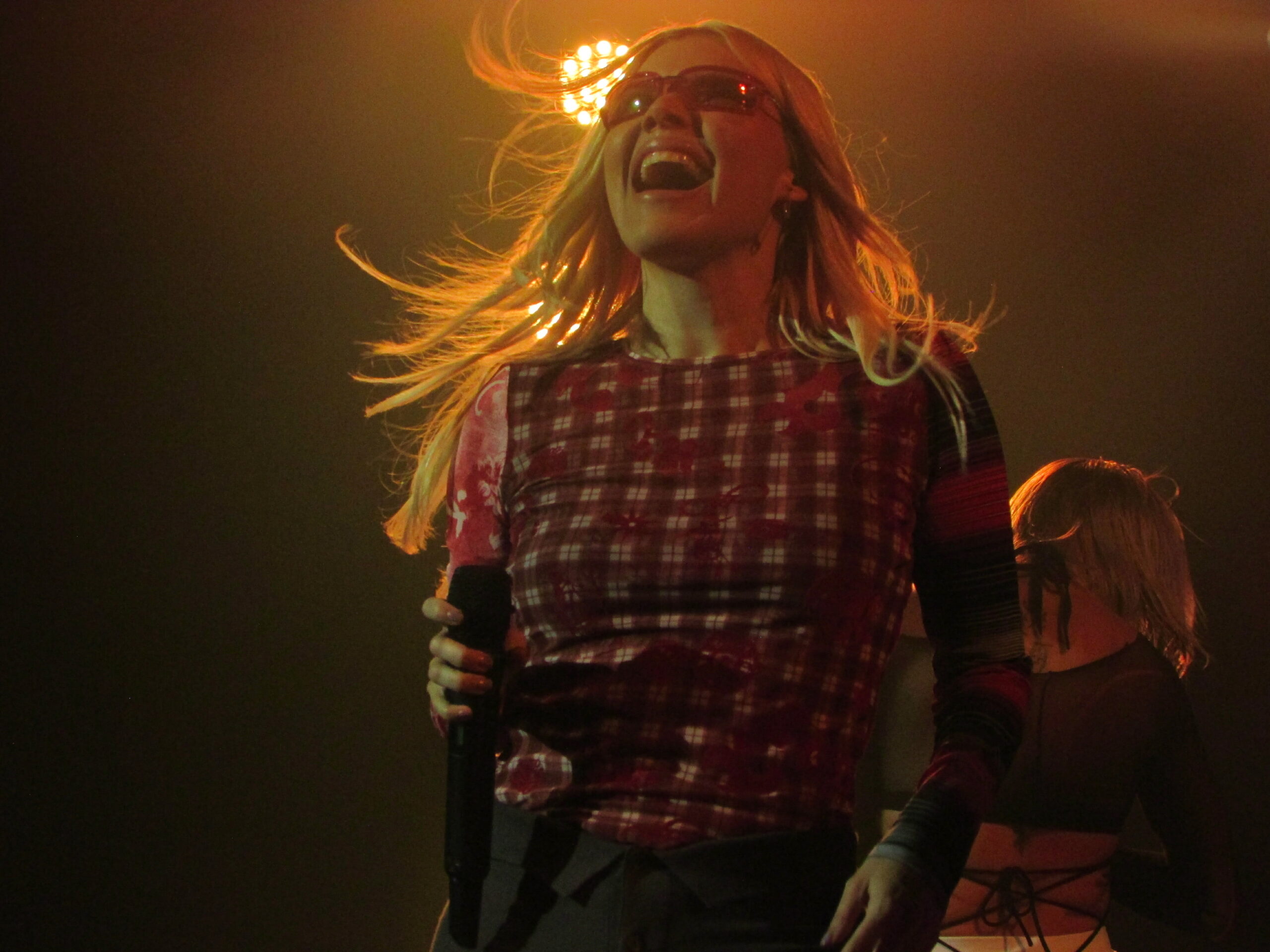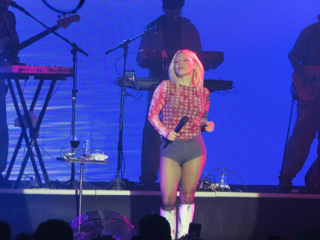 Para a minha surpresa, o show marcado para às 23 horas, começou quase a uma da manhã, o que para um cara como eu, é quase de manhã. Mas fazer o que? Era uma sexta-feira, e cerca de 650 jovens fãs pilhados estavam pouco preocupados com o fato de o início dessa balada pop começar tão tarde. Como diria a música do 14 Bis, essa linda juventude. Mas nada de velharia, estou falando de um show de Duda Beat. Quase uma da matina, eis que surge a banda, composta por quatro integrantes, no fundo do palco e como um raio, acompanhada por duas dançarinas, a cantora surge com óculos escuros, botas brancas, um shortinho e uma camisa xadrez, fazendo a massa delirar.