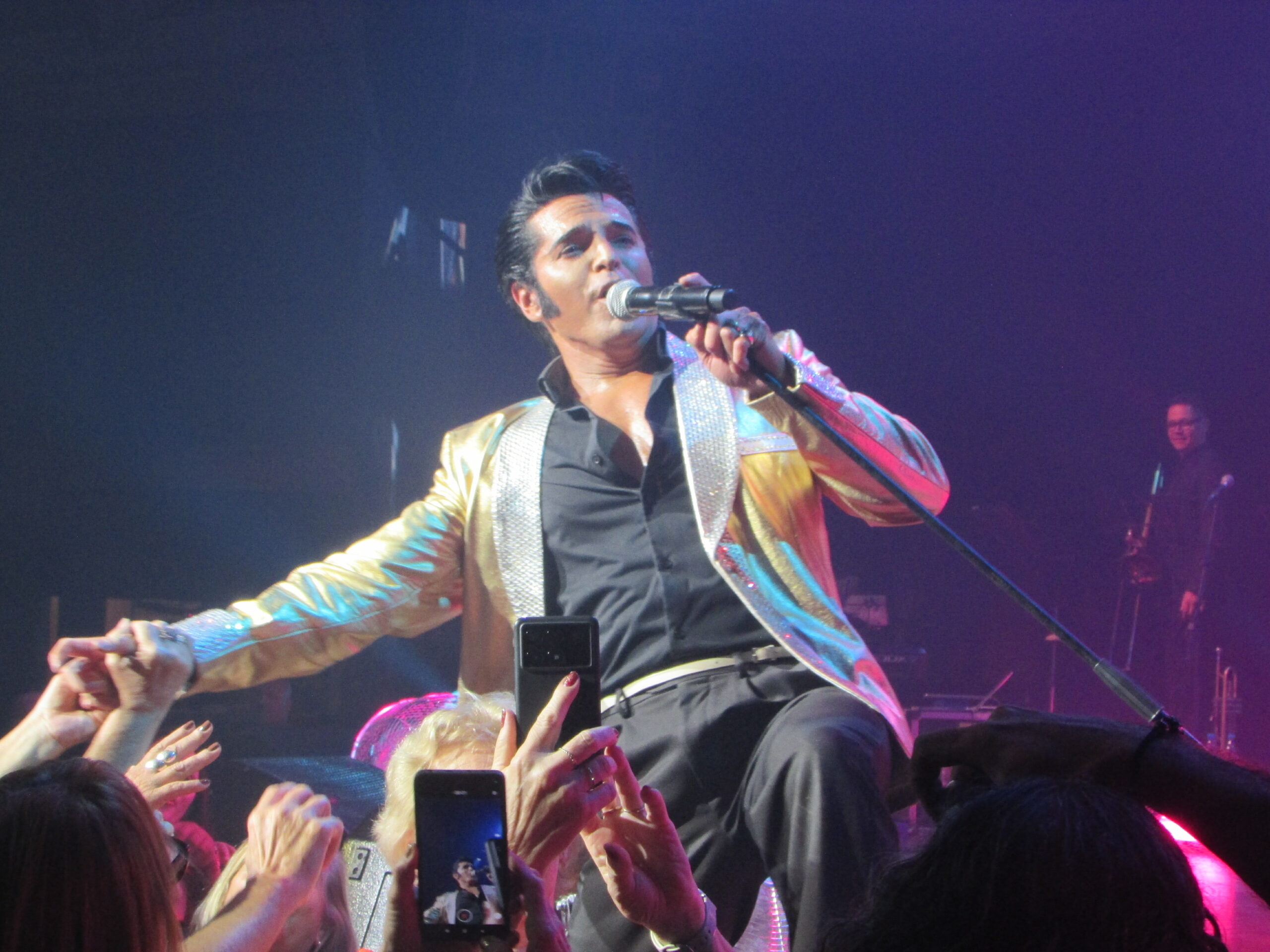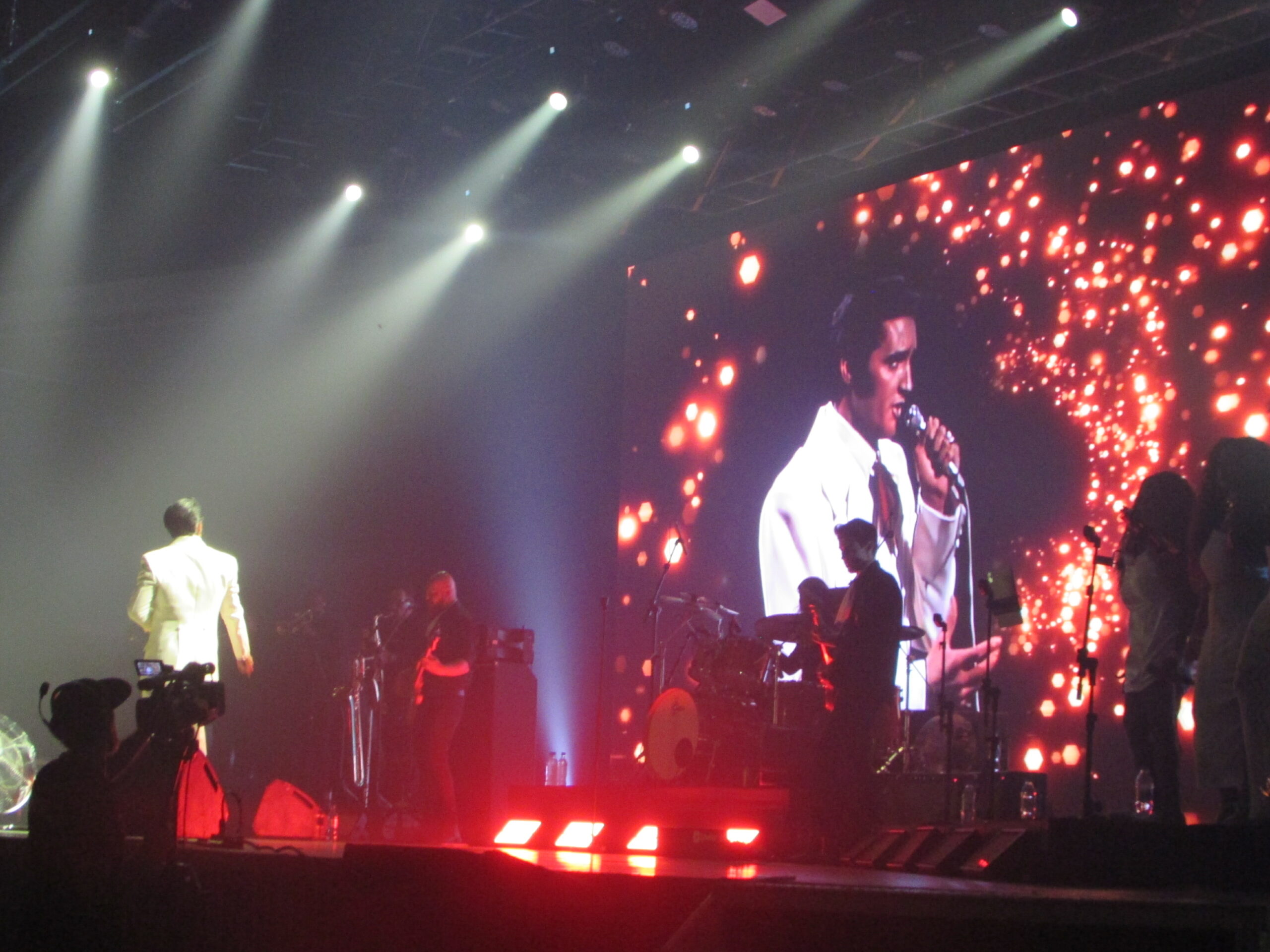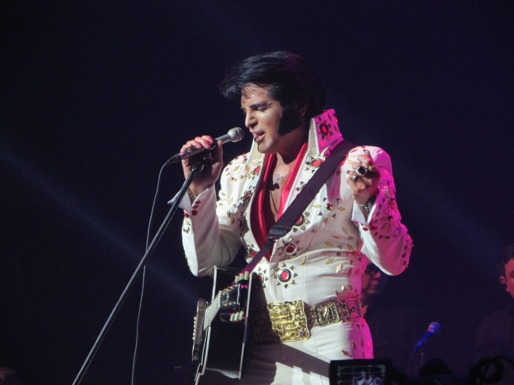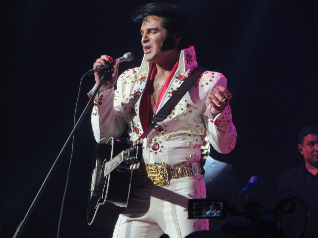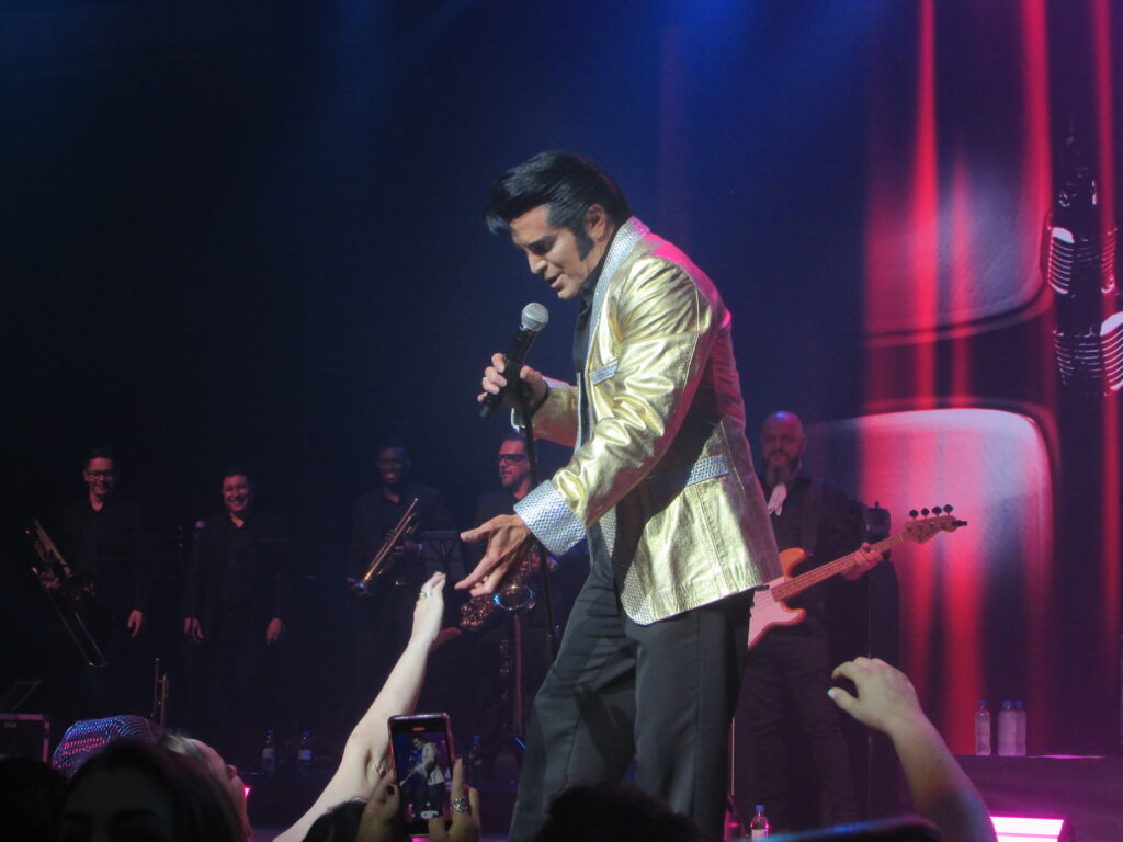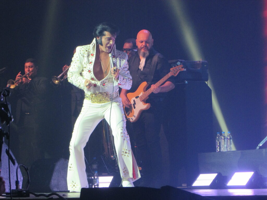 Com as músicas de 2001 – Uma Odisseia no Espaço no fundo, eis que surge com aquele macacão clássico branco e cheio de detalhes dourados, Dean Z, pronto pra incendiar o tímido Araújo Vianna. Infelizmente dessa vez o público estava mais comedido, sentado e menos animado, diferente do show dele que cobrimos em 2024. Mas o cantor não tem nada que ver com isso e segue com os petardos See See Rider, a maravilhosa Burning Love e Steamroller Blues. Dean Z então fica de costas, com luz baixa, e a banda começa a tocar a música mais linda da história (na opinião de quem escreve), You Lost That Loving Feeling, pena que na metade da música chamou um amigo gaúcho, Diogo, que parecia mais ter vindo de um rodeio com agroboys para cantar com ele, não fez feio, mas queria ter visto Dean Z ter cantado toda a música. Segue o baile com Polk Salad Annie e a lindíssima Always On My Mind, em que afirma que foi a segunda música de Elvis mais famosa em terras brasileiras. E a primeira que vem em seguida, Suspicious Mind, com uma interpretação incrível do cantor, consegue fazer o povo ficar de pé, em um dos momentos mais vibrantes do show .