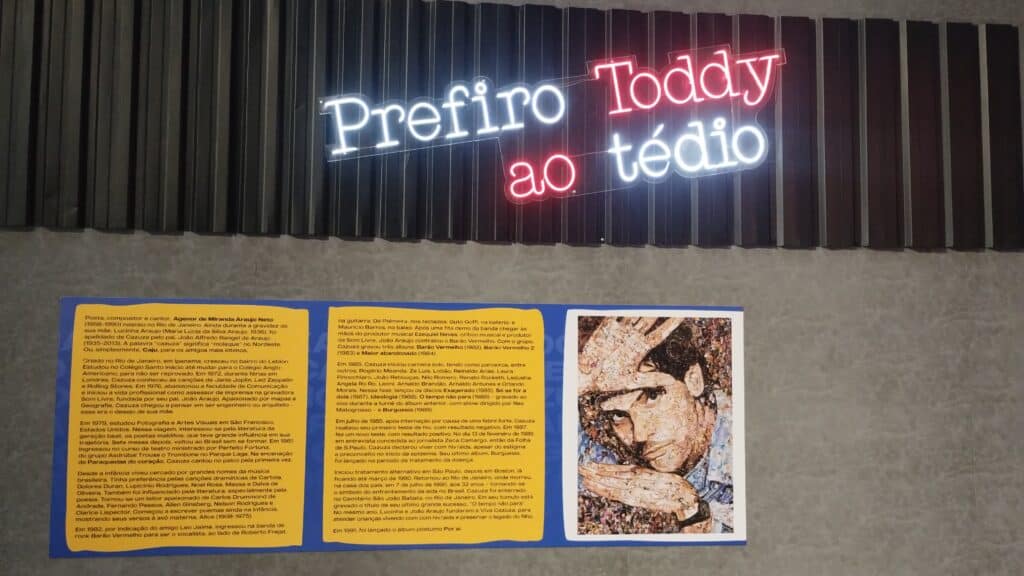 Seria simples produzir uma exposição baseada apenas na música e na poesia de Cazuza. Por ser uma obra que fala por si só, possui potência suficiente para segurar uma exibição. No entanto, seria insuficiente para retratar o impacto que a figura de Cazuza causou na cultura brasileira. Ele era um aglutinador cultural e de pessoas talentosas e interessantes; ele era um agente da vida para além do “sobreviver”, um carioca que entendia que a vida é para ser aproveitada ao máximo. A curadoria assinada por Ramon Nunes Mello e a produção da Hit Makers coloca esse aspecto no centro ao trazer itens de acervo inéditos extremamente intimistas, como fotos pessoais, máquinas de escrever de onde nasceram boa parte dos poemas de Cazuza, registros escolares, peças de roupas, etc. Isso, junto com numerosos depoimentos das mais diversas figuras (Pedro Bial, Leoni, Leo Jaime, Caetano Veloso, Bebel Gilberto, Sandra de Sá, Ney Matogrosso, e claro, Lucinha Araujo, mãe do músico) consegue resumir bem o impacto que ele causava no mundo, colocando o público neste lugar de intimidade com Agenor de Miranda Araújo Neto.