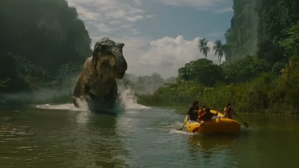 Confesso que não tenho grande apreço pelo diretor Gareth Edwards, mesmo tendo Godzilla (2014) no seu currículo. Seu último filme de ficção, Resistência, é uma das grandes bombas dos últimos anos. Mas como mérito sabe condensar ideias do melhor que o cinema produziu e replicar essas referências nas suas obras. Pode parecer pouco inventivo, mas o diretor sabe como poucos costurar um emaranhado de referências e que neste sétimo filme da saga dos dinossauros estão mais presentes do que nunca.