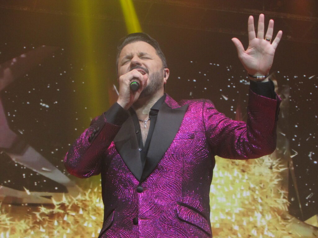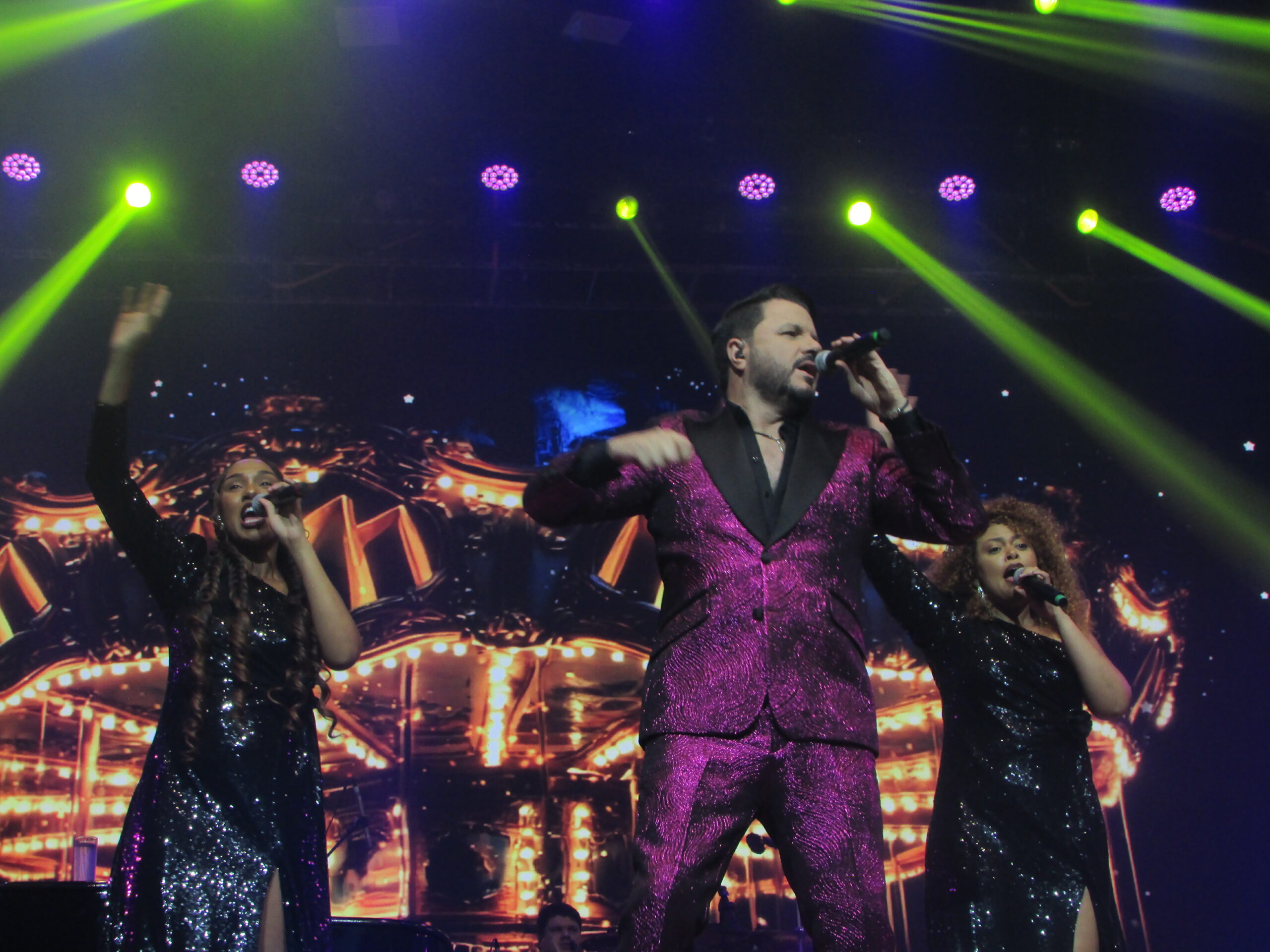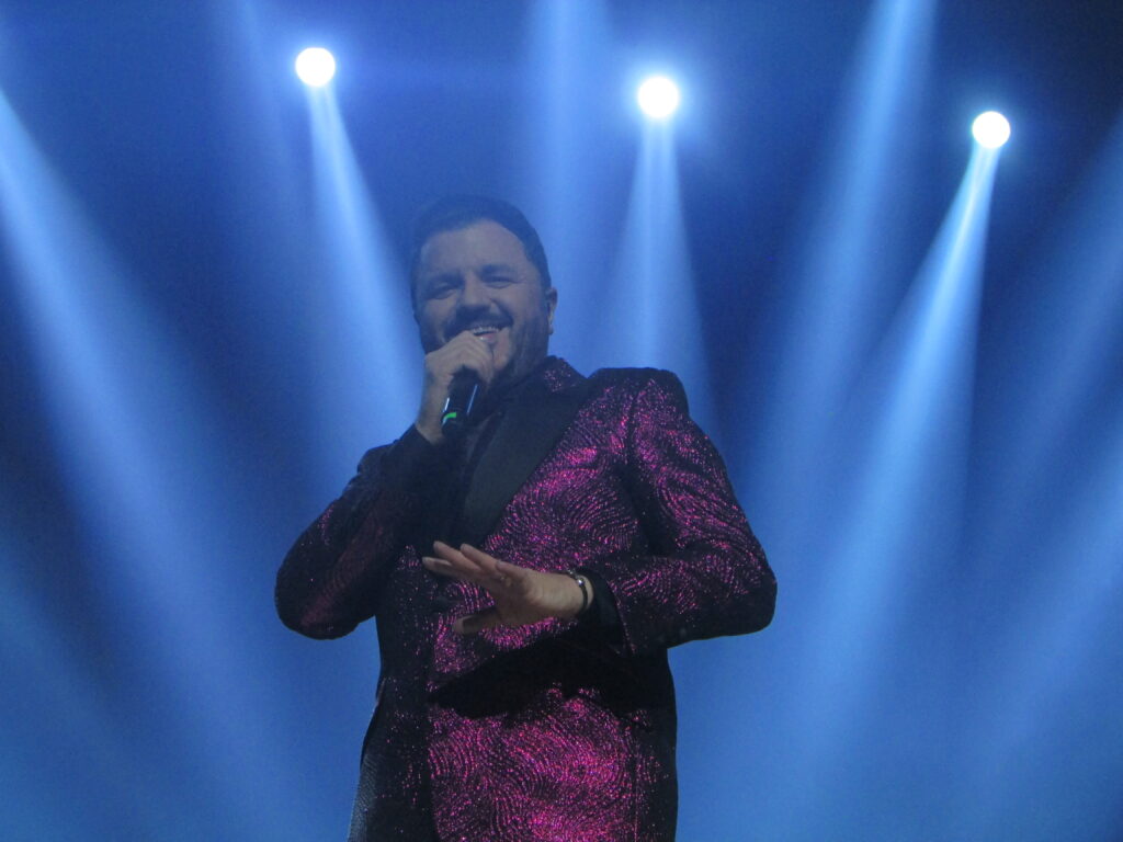 Depois de cair aquela lágrima quente da plateia, vai ao piano e brinca com Coringa, o saxofonista que toca trechos de músicas no sax e manda ver num Careless Whispers, do George Michael. Maurício avisa a galera que vai chamar mulheres da plateia para dançar com ele no palco. Promessa cumprida com duas sortudas que bailam com ele ao som de Glory Of Love (Peter Cetera) e Eu Juro (Leandro e Leonardo). Eis que surge uma mulher de vermelho para dançar Lady In Red. O cantor, em perfeita sintonia, no final acaba beijando-a, e logo explica que ela é sua esposa, que se apresenta para o público gaúcho, sob aplausos. Então ataca de música própria, sim, ele tem algumas dele no show, como Se Quer Saber e depois manda a balada I Want Know What Love Is, do Foreigner. Manieri vai para o piano, onde nos apresenta uma tocante interpretação de Always On My Mind, que ficou famosa na voz de outro Rei, o Elvis, se mantém sentado na frente do instrumento e faz uma seleção de versões intimistas, incluindo Coleção (Cassiano), Falando Sério (Roberto Carlos) e fecha com uma inusitada É Tarde Demais, do Raça Negra, em formato surpreendente. Segue o baile com Inesquecível (Laura Pausini), antes de pedir pro povo ficar de pé pro bailão do Maurício, tocando as animadas Wake Me Up Before You Go-Go (Wham), o seu maior sucesso, Minha Menina, com direito a passinhos dele com a galera da banda. Ainda teve Caça e Caçador, do Fábio Jr., Love Is In The Air, do Paul Young, Can’t Take My Eyes Off You (Frankie Valli) e um apoteótico final com Time Of My Life, trilha do clássico Dirty Dancing, de 1987, encerrando o show com Rick Astley com Never Gonna Give You Up, com direito a caras e bocas dele no telão, num final super alto astral.