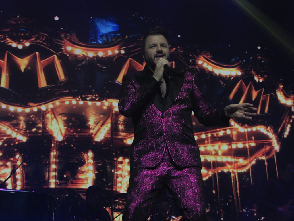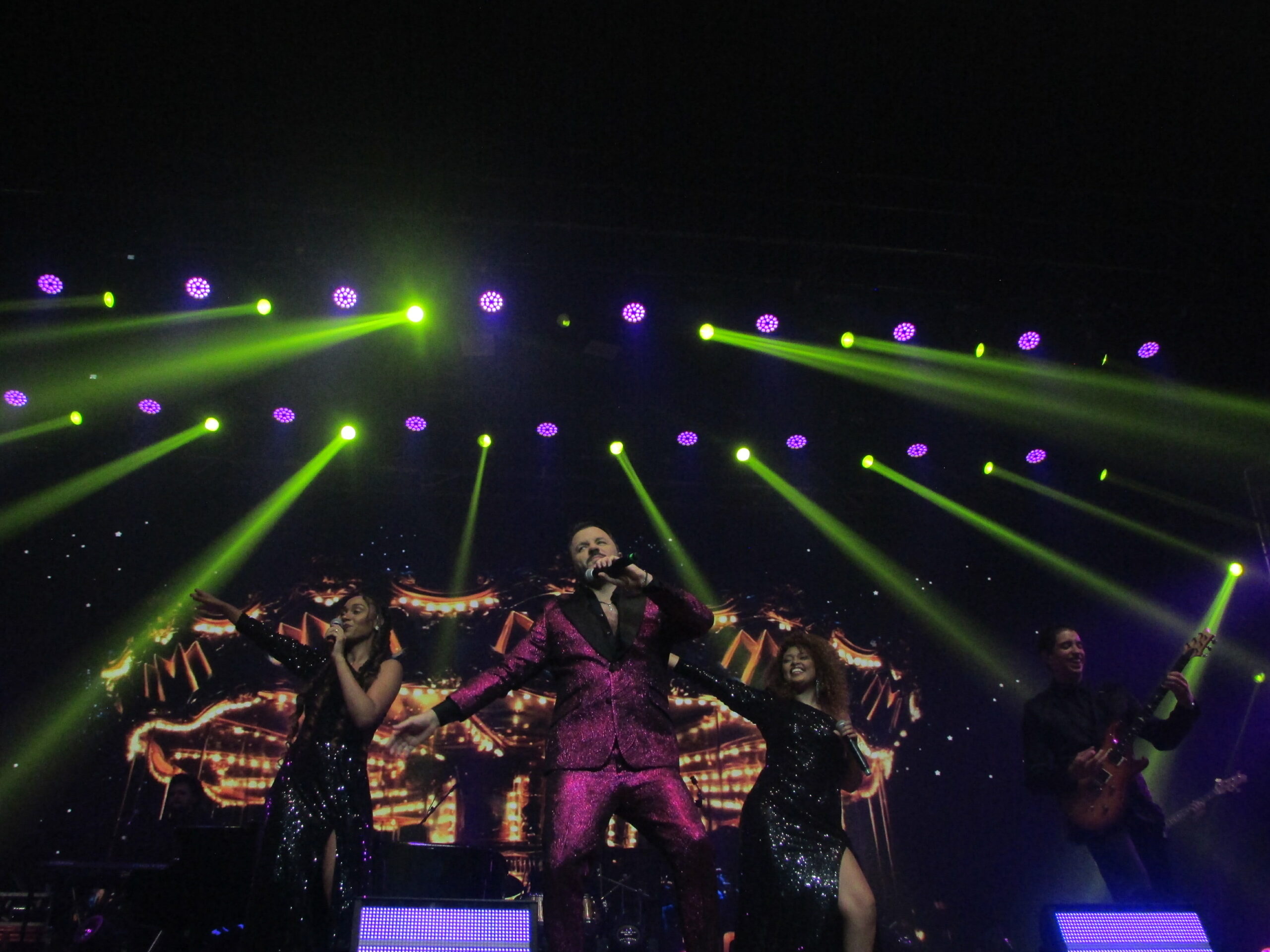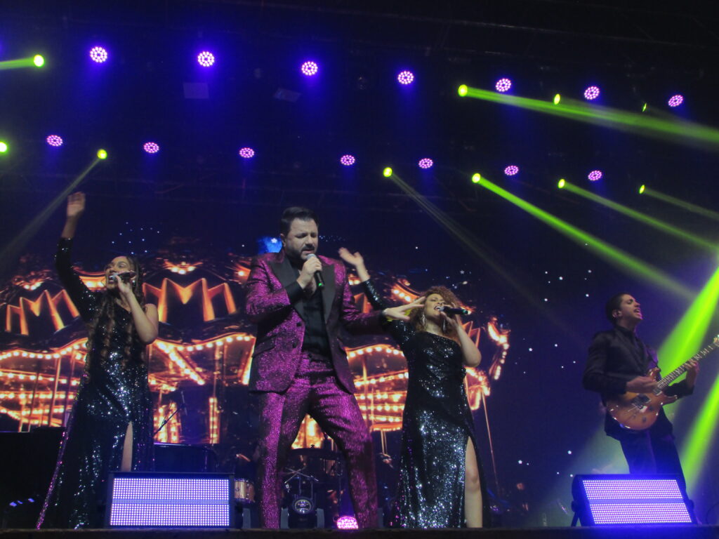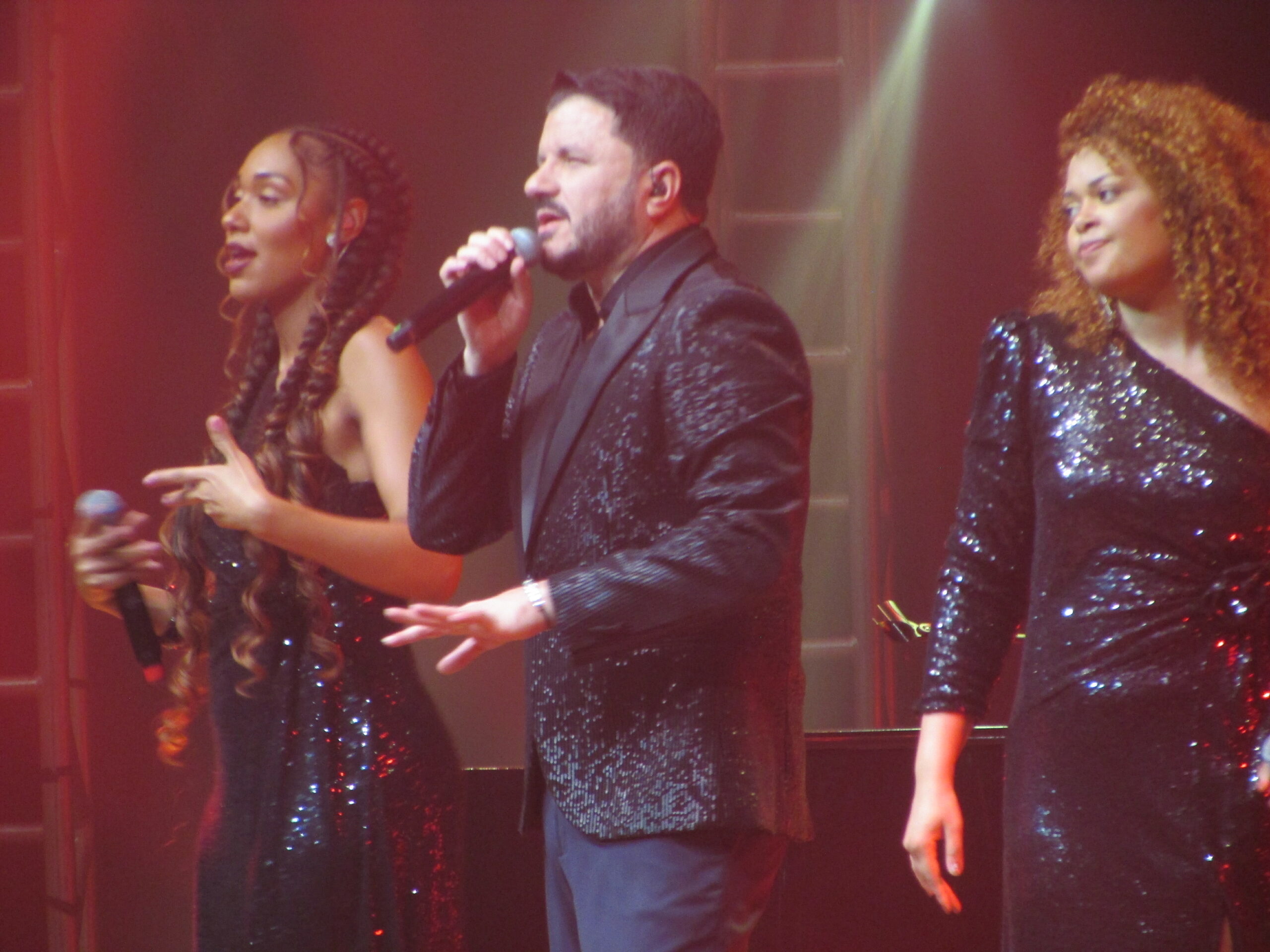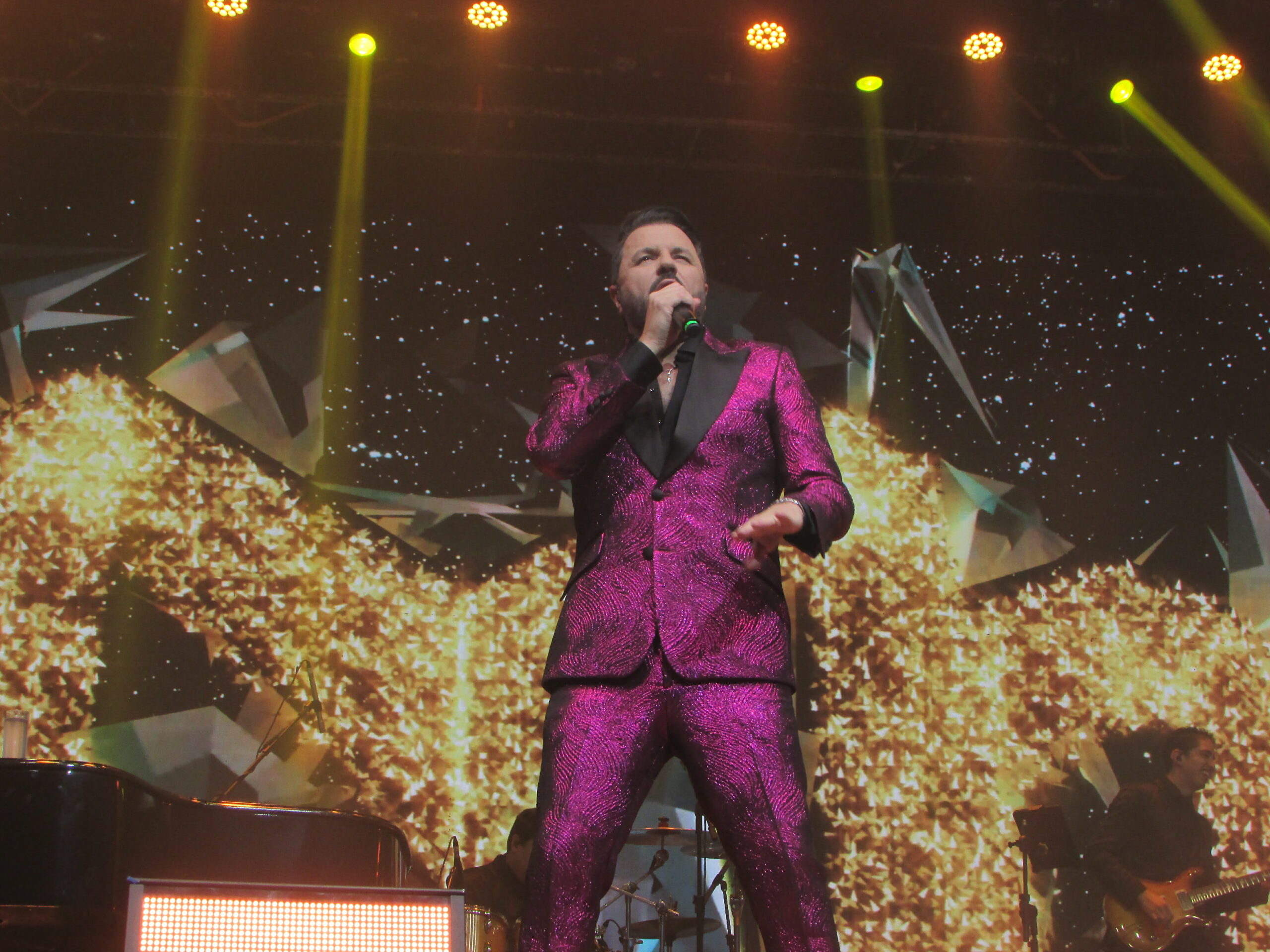 Mesmo sendo uma sexta-feira pós feriado da consciência negra, um público excelente se fez presente no auditório para conferir a viagem no tempo em clássicos românticos e hits atemporais que Manieri promete. E as 21h30min em ponto entra a banda numa elegância pura, com duas backing vocais com cintilantes vestidos, em um palco com um telão muito colorido. Maurício Manieri chega ao palco esbanjando simpatia com um terno violeta e preto com aquela clima Elvis na fase dos shows de Las Vegas. Kitsch, cafona ou brega? Pode até ser, mas muito competente e divertido. Maurício já começa o show com uma emocionante Angels, de Robbie William. Agradece a plateia e ataca de música própria, Bem Querer, do disco de 1998, que o fez tornar-se um ídolo nacional. E daí em diante era só musicão, com Easy Lover (Genesis), Cheia de Charme (Guilherme Arantes) e All Night Long, do Lionel Ritchie. Um show agradável recheado de hits. Destaque pro guitarrista, que além de talento era só sorriso, dançando e esmerilhando nos solos. E o naipe de metais e suas coreografias ensaiadas.