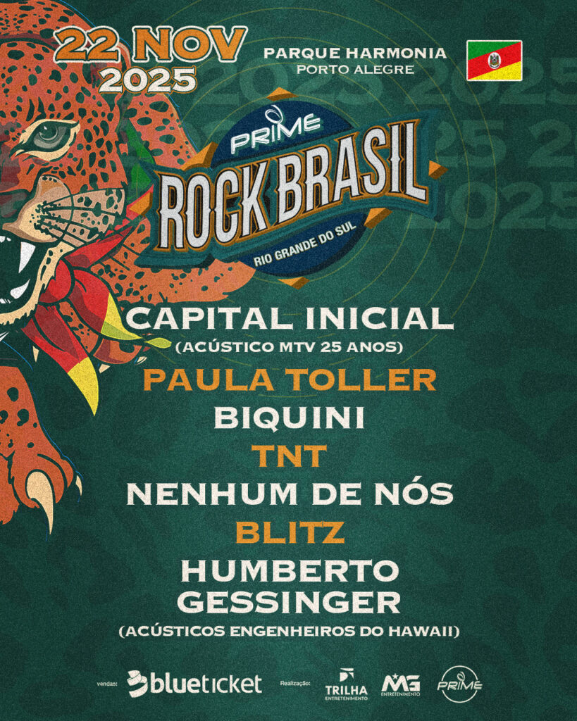 Porto Alegre será palco de um momento inesquecível para os amantes do rock brasileiro. No dia 22 de novembro, o Prime Rock Brasil desembarca pela primeira vez na capital gaúcha, ocupando o Parque Harmonia com um line-up de peso que reúne sete grandes nomes que marcaram gerações: Capital Inicial, Paula Toller, Humberto Gessinger, Blitz, Nenhum de Nós, TNT e Biquini Cavadão.